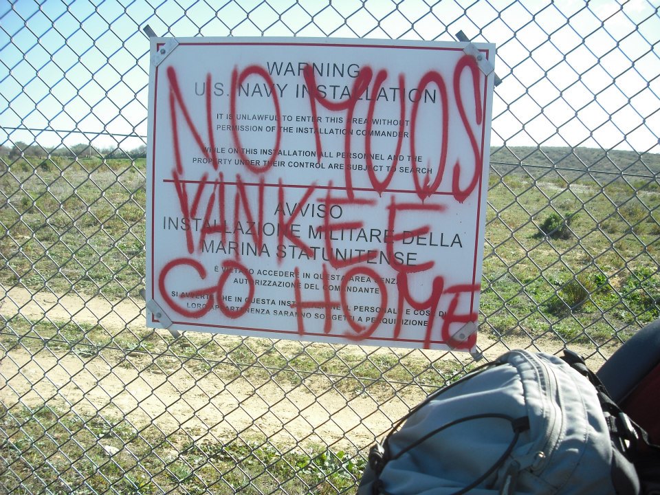 La salute e l’ambiente minacciato dalle nocività sicuramente ci preoccupano, ma ancor più ci inquieta la presenza di queste basi militari che con le loro funzioni di guerra continuano a seminare morte e distruzione e a perpetrare pericolose competizioni tra i vari blocchi di potere, invece di iniziare a percorrere le vie d’uscita da questo sistema che attenta quotidianamente alla vita delle popolazioni umane, animali e della Terra intera.