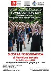 Il Ricetto per l’Arte – Agorà della Valsusa – di Almese inaugura sabato 4 giugno, ore 17.00, la mostra fotografica “FOMNE CONTRA’L TAV” (Donne contro il TAV) Partigiane della Terra e del Futuro. L’esposizione, realizzata con il Patrocinio dell’Unione Montana Valle Susa e della Città di Almese, prosegue il ricco programma espositivo del Ricetto per l’Arte – Agorà della Valsusa – per il 2022 con gli eventi della seconda edizione de “L’Arte di R-esistere sui Sentieri della Libertà”.