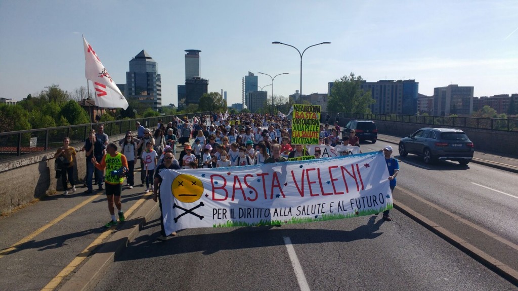 Ore 15:42: Il corteo parte da Brescia 2, dal Parco Gallo. In testa lo striscione ” “BASTA VELENI, per il diritto alla salute e al futuro”.