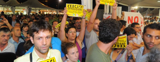 L’invito neanche una settimana fa: “Venite qui a darmi dello zombie se avete il coraggio”, direttamente dalla bocca del Segretario del Partito Democratico Pierluigi Bersani alla Festa Nazionale del Pd di Reggio Emilia. E loro, gli attivisti del Movimento Cinque Stelle, non se lo sono fatti ripetere due volte. In silenzio, ma con tanti cartelli gialli con la scritta: “cercasi opposizione. Pd uguale perditempo”, sono arrivati alla Festa dell’Unità di Bologna, nel giorno più lungo del segretario, dopo l’inaugurazione del circolo di Villalunga di Castenaso e il dibattito intervista con Walter Veltroni. Un gruppo di venti militanti del Movimento Cinque Stelle, sezioni di Bologna e Ravenna è arrivato verso le 9 a mezz’ora dall’inizio della lunga intervista di Aldo Cazzullo al segretario del Pd. Gli attivisti, con i cartelli alzati hanno attirato l’attenzione del pubblico e delle forze dell’ordine che hanno cominciato a strappare i manifesti e a chiedere di abbandonare la postazione. A fianco, un gruppo di attivisti dei “No Tav”, che con le maniere forti è stato costretto ad abbassare le bandiere.