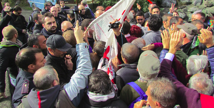 Si parte insieme, proprietari dei terreni, deputati, giornalisti e attivisti no tav. Dopo circa un’oretta di cammino ecco però la sorpresa (situazione assai comune però ai semplici cittadini), la strada è sbarrata, “problemi di ordine pubblico, non si passa”. Decine di poliziotti, un idrante e alcuni mezzi impediscono l’accesso alla val Clarea, ben lontani dall’area recintata e occupata dal cantiere ma così è, impossibile proseguire. Alcuni tra i quali la deputata Fiorenza, la Beghin, Marco Valli e altri ancora chiedono spiegazioni, si presentano, spiegano le ragioni della visita, il prano in compagnia per loro preparato ma nulla. Il sostituto del prefetto è irremovibile, non si passa rispondendo addirittura che se una telefonata fosse stata fatta ieri… Citando articoli e norme tra le quali il diritto di libera circolazione, il ruolo ispettivo senza preavviso di cui gli eurodeputati dispongono (che non è un loro diritto ma un dovere istituzionale per la salute pubblica, la trasparenza e il controllo) decidono così di non fermarsi all’alt insolente delle forze di polizia italiane.