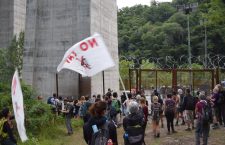 Dopo un saluto ai presidianti, insieme ci si è diretti verso i luoghi del nuovo allargamento, appositamente recintati e presidiati dalla polizia, e circondando tutta l’area si è fatta una lunga e sonante battitura alle recinzioni.