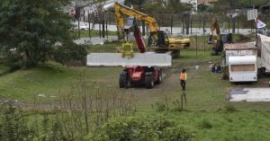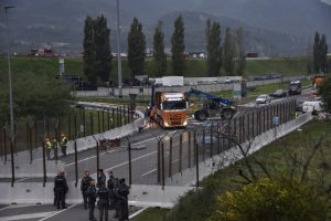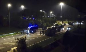 Ma, senza alcun preavviso, neppure alle istituzioni locali, arriva la sorpresa e la sceneggiatura vienecorretta strada facendo. O forse no, anzi di sicuro era già scritta ma bisognava leggere tra le righe, roba da professionisti. Ed è così che il passaggio di proprietà viene anticipato con l’ausilio della “Forza Pubblica” che non si fa certo pregare: alle 2 di notte del 7 ottobre il blitz. Con le ruspe e un fitto lancio di lacrimogeni vengono sbattuti fuori casa i militanti No Tav che da tempo presidiano pacificamente il prato che, fino a prova contraria, è ancora “proprietà privata” (dei No Tav, non di TELT). Il terreno ancora da espropriare diventa off limits prima del tempo. Vietato anche avvicinarsi. Molte immagini documentano la “presa di possesso” preventiva: nel blitz notturno, mentre il piccolo prato verde cambiava colore e diventava terreno di conquista percorso da ruspe, si provvedeva a recintarlo con i soliti “jersey”: base robusta di cemento, più sopra griglia robusta di ferro e una allegra corona di spine ancora più in alto. Un lavoro ben fatto, presidiato ovviamente dalla stessa “Forza Pubblica” che aveva protetto i lavori.