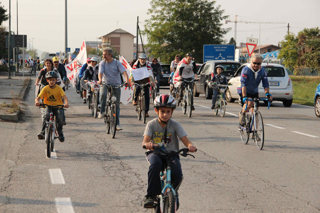 Uno scampolo di sole d’autunno, tanti colori smaglianti degli equipaggiamenti ciclistici, bandiere NO TAV al vento, il divertito scampanellio delle biciclette e il fragoroso suono di alcune sirene di allerta hanno creato un’atmosfera di gioiosa e determinata partecipazione.