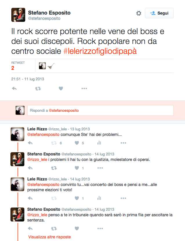 dopo aver citato Lele Rizzo a sproposito in ogni occasione (dai concerti alle trasmissioni radio passando per il senato)