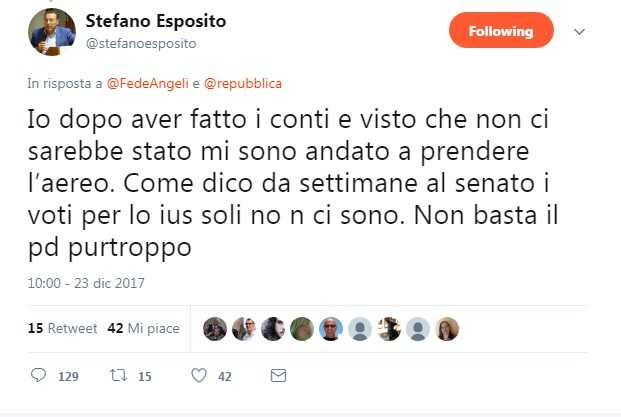 Stefano Esposito ci ha lasciati, non ha più alcuna carica in Senato e in Commissione Trasporti e deve lasciare la poltrona e la ribalta tanto cara…e noi appena possibile brinderemo, perchè non ne sentiremo la mancanza!
