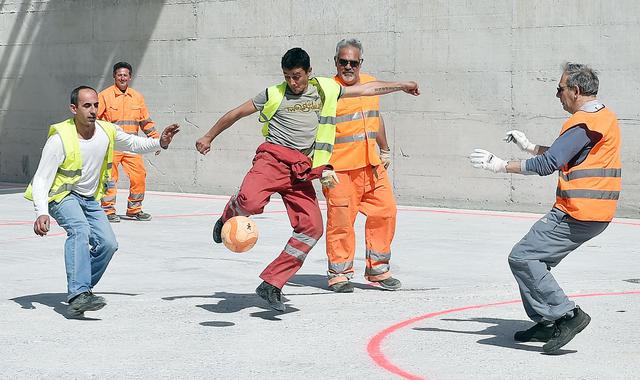 della talpa Gea, obbligati a misurarsi con i fantasiosi segmenti di terreno, morbido ed arrendevole a tratti, mentre in altri pietra vigorosa si difende. Tutto ciò con il luccichio beneaugurale di uno pseudo albero di Natale, corredato di palle quasi semaforiche e di bandiere italo – francesi a consolidare una alleanza di grandi affari su un territorio non proprio consenziente, alla faccia del dialogo e relativo ascolto.