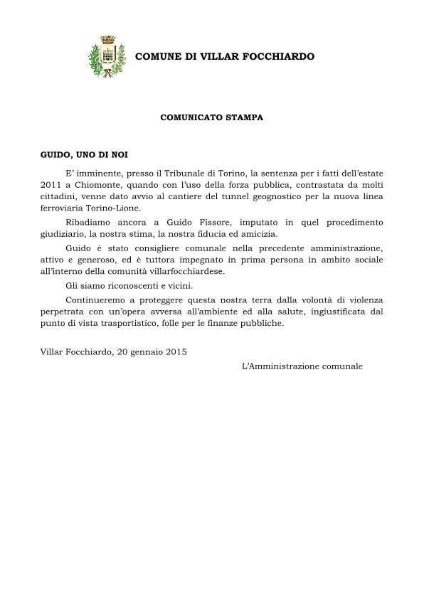 Ribadiamo ancora a Guido Fissore, imputato in quel procedimento giudiziario, la nostra stima, la nostra fiducia ed amicizia.