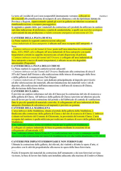 di ambientevalsusa Quello di LTf sulla tratta comune (tratta italiana da Chiusa san Michele al confine di Stato) non è un progetto. Se ancora c’erano dei dubbi il fatto che la commissione CIPE abbia richiesto ben 222 prescrizioni e posto 5 raccomandazioni ci spiega chiaramente che a quel progetto mancano le più basilari condizioni per essere ritenuto tale da qualsiasi persona sana di mente. Ma lo spettacolo (la truffa in questo caso) deve continuare, ed ecco che il CIPE cerca di “salvare la faccia” con le prescrizioni. Sappiamo già adesso che quelle prescrizioni sarebbero aggirate se l’opera partisse. BENE! Un altro ottimo per fermarlo. E lo fermeremo, quando e se mai partirà… Per adesso ci sono i militi a guardia del nulla nel “non cantiere di Maddalena”… 90.000 al giorno dal 27 giugno… Prima di pubblicare le prescizioni del CIPE (e spaventarvi ancora di più), leggetevi queste chicche, estratte dal progetto… Ce ne sono anche altre, ma vanno prese a piccole dosi altrimenti vi coglie il disgusto, il vomito, più o meno come quando vedete Virano in TV… Eccovi in formato jpeg… diffondete il disgusto, la gente sarà carica a puntino per le prossime manifestazioni. LTF lavora per noi, in quanto a far crescere lo schifo!
