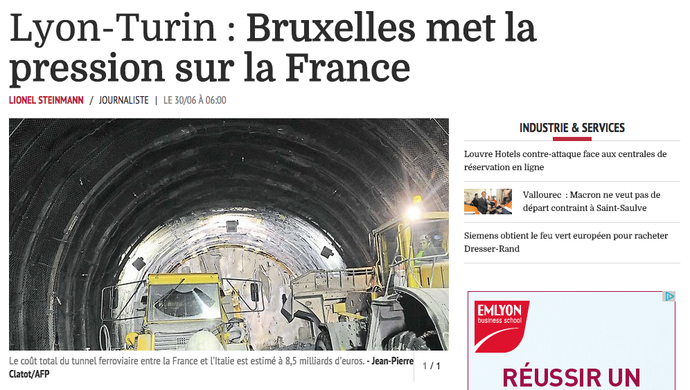 da Spinta dal Bass – Ieri pomeriggio una variegata fauna politica brindava e mandava comunicati stampa per festeggiare la proposta dell’UE di cofinanziare, con 813 milioni di euro, la sezione transfrontaliera della Torino-Lione. A riportarli con i piedi sulla terra ci pensa un articolo del più noto quotidiano economico-finanziario francese. Scrive Les Echos che “il finanziamento per il progetto sul budget 2014-2020 è inferiore alle previsioni”. Dato che “il costo totale del tunnel è stimato in 8,5 miliardi di euro, i promotori del progetto [Telt] avevano indicato alla Commissione che contavano di realizzare, da qui al 2020, lavori per 3,2 miliardi. Il cofinanziamento avrebbe potuto essere di 1,28 miliardi. La somma promessa da Bruxelles è inferiore di 467 milioni. Per arrivare a questo risultato la Commissione non ha tagliato il tasso di cofinanziamento promesso (sempre del 41,08%), ma ha stimato che solo 2 miliardi di lavori saranno completati entro il 2020, e non 3,2. La sovvenzione è ridotta proporzionalmente”. Potrebbero essere due, secondo il quotidiano, i motivi di questa riduzione del finanziamento atteso: l’ipotizzato avanzamento dei lavori sarebbe stato giudicato troppo ottimistico, tenendo anche conto di alcune difficoltà giuridiche ancora da superare; o anche un segnale alla Francia che ancora non ha stabilito come finanziare l’opera.