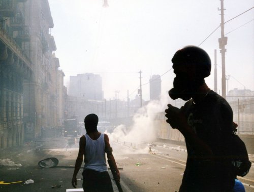 Le nostre bandiere sono ancora intrise dei lacrimogeni di Genova, in quel luglio del 2001; partecipammo forse per la prima volta a un evento internazionale con i nostri simboli, partendo dalle Valle di Susa, dopo l’uccisione di Carlo, con una rabbia nel cuore, che non abbiamo mai voluto lasciar svanire.
