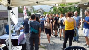 Davide: Il profumo del risotto ai funghi pervade il vialetto cieco, che termina proprio a casa di Dana. Di fianco al gazebo, su tavoli e panche ci sono verdure saltate, antipasti, uva fragola, dolci, vino… benvenuti all’aperiarresto!