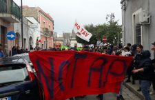 Dopo questi giri di saluti e conoscenze partiamo subito per Melendugno: la ditta del Tap oggi non lavorerà e l’Assemblea ha deciso di fare un corteo per il paese. Partiamo da piazza Pertini e Marco ci invita a salutare la piazza gremita da circa 500 persone. Nonostante le nostre proteste, i no Tap ci fanno aprire il corteo: “ Avete attraversato tutta l’Italia per essere qui, ve ne siamo immensamente grati, è il minimo che possiamo fare”. Dietro di noi si mettono gli Studenti Autonomi di Lecce e alcuni studenti di Bari che in 150 hanno fatto i pullman per scendere a San Foca.
