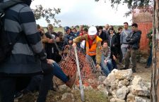 La giornata continua con alcune proteste da parte dei manifestati volte a sollecitare l’arrivo delle ceste e della terra per trapiantare gli ulivi da giorni sradicati e rovesciati dentro il cantiere. I camion con il materiale arriva, entra nel cantiere, ma gli operai si trascinano qua e là, spostano un ulivo e poi lo rimettono al posto di partenza, fanno grandi pause e alla fine della giornata nessun albero viene messo dentro la terra.