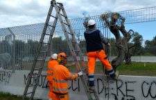 Alle 9:30 arriva un furgoncino di operai scortati dal capo dei vigili urbani del paese. Mezz’ora dopo si presenta un’altra squadra di operai capeggiata da Claudio Moruzzi, un ex militare che dopo aver preso parte attiva alla guerra in Iraq si é “reinventato” e ora gestisce una ditta specializzata in sicurezza. In quel momento viene svelato con i fatti la vera motivazione di Tap per questa giornata di lavori: rifortificare il cantiere che era stato violato dagli “Scazzamurrieddu” ovvero dai folletti che tolgono le reti del cantiere che non dovrebbe esistere “né moi né mai” (ne ora ne mai), né qui né altrove.