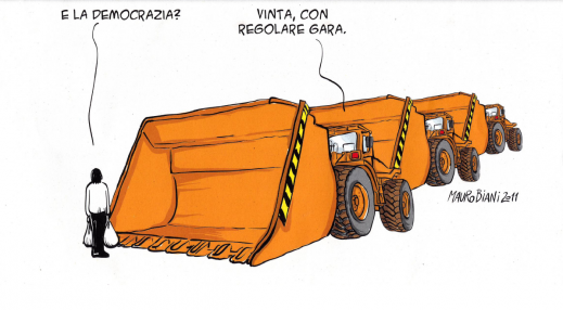 – affermiamo il ruolo di sorveglianza della democrazia svolta dalle comunità, dai movimenti e dalle associazioni in lotta contro le Grandi Opere Inutili e Imposte, in grado non solo di controllare dal basso e di contrastare la dinamica affaristica messa in atto dalle classi politiche e imprenditoriali alleate con le mafie, e denunciamo la sistematica esclusione delle popolazioni dal processo decisionale e democratico e l’ormai abituale uso delle forze dell’ordine per la repressione dell’opposizione popolare,