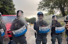 Quando la colonna di camion e ruspe ha imboccato via Nietzsche non ha trovato la strada esattamente sgombra, così come era già successo mercoledì e venerdì scorso, e ha faticato parecchio per riuscire a raggiungere la recinzione di jersey di cemento e lamiera posizionate su di un prato antistante all’area del Galoppatoio. Le persone presenti al presidio hanno così rallentato di almeno quattro ore (mezza giornata lavorativa) l’avvio dei lavori salvo poi essere allontanate dalla strada a suon di strattoni e spintoni dalla polizia, come testimoniato da numerosi video ospitati da varie testate giornalistiche.