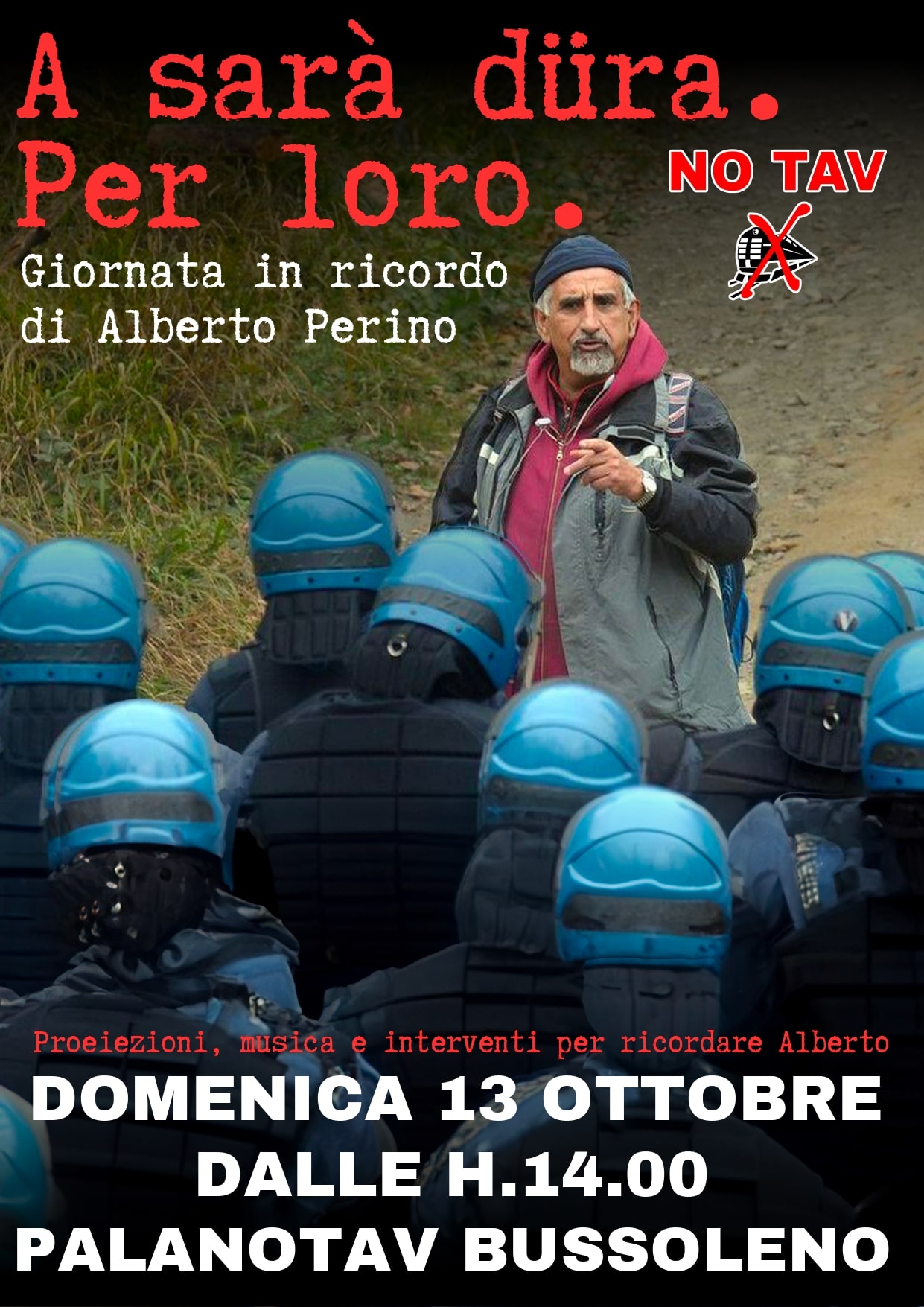 Domenica 13 ottobre ore 14 Palanotav di Bussoleno: “A sarà dura. Per loro.” Giornata in ricordo di Alberto Perino