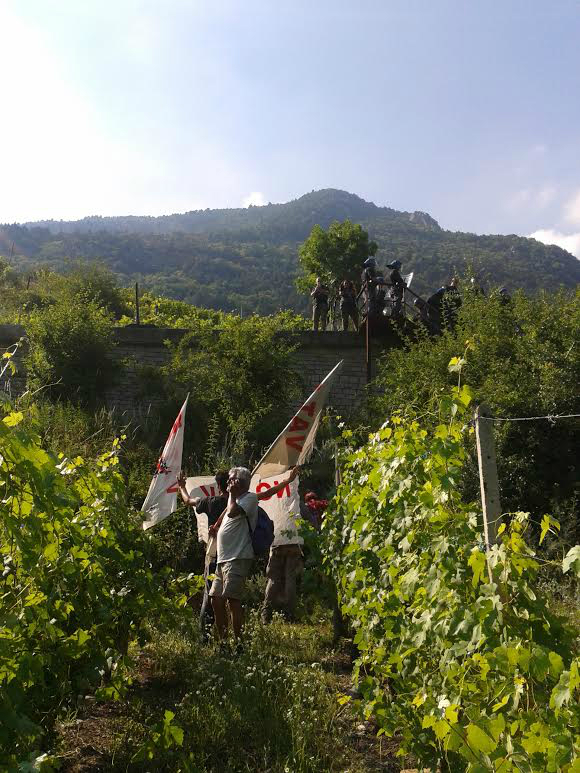 Domenica pomeriggio, mentre sul ponte davanti alla centrale di Chiomonte cadevano i betafens (messi a difesa della recinzione del cantiere) una quindicina di notav, armati di bandiere, arrivavano in via dell’Avanà all’altezza del b&b. I 15 scout sono arrivati indisturbati passando tra le vigne dopo aver guadato la Dora. Questa è l’ulteriore riprova che il cantiere non è inviolabile. Neppure quando è presidiato con eccezionali misure di sicurezza (vedi elicottero in volo sopra la centrale). Dopo aver sventolato le bandiere per 10 minuti i nostri se ne sono andati, facendo in senso inverso lo stesso percorso dell’andata.