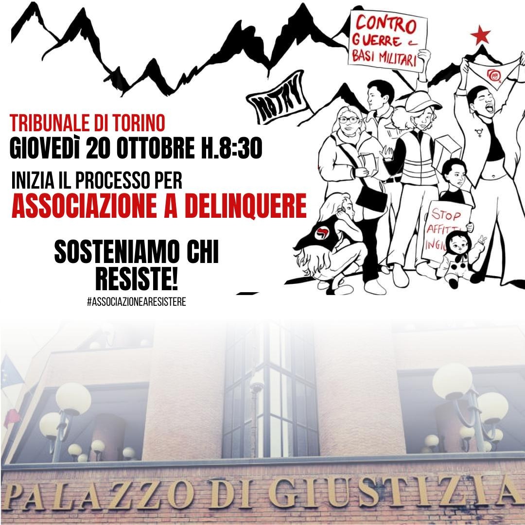 Vi aspettiamo giovedì mattina alle 8,30 di fronte al Tribunale di Torino in Corso Vittorio Emanuele.