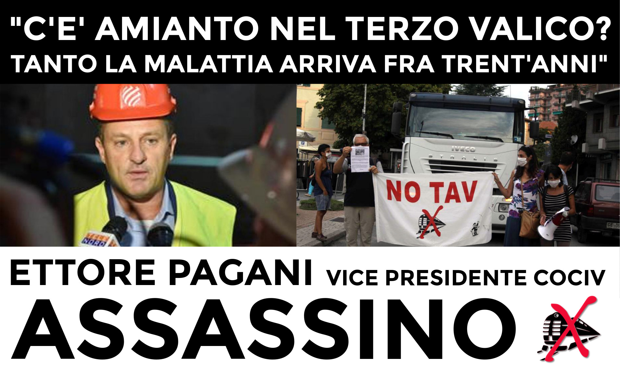 da notavterzovalico – Ieri su alcuni quotidiani sono uscite nuove intercettazioni ambientali riguardanti l’inchiesta che alcuni mesi fa portò all’arresto della cupola del Cociv. Un collega, riferendosi al rischio amianto, si rivolge ad Ettore Pagani, al tempo vice presidente del consorzio, con queste parole: “…il primo che si ammala è un casino…”. Ettore Pagani dal canto suo ribatte: “…tanto la malattia arriva fra trent’anni…”. Una risposta che dovrebbe far indignare chiunque sia una persona per bene, che testimonia come ai dirigenti del Cociv della salute dei cittadini e dei propri operai non interessi proprio nulla. Solo un intralcio da sacrificare sull’altare del profitto di un’opera miliardaria utile esclusivamente ad arricchire le tasche di Salini – Impregilo.