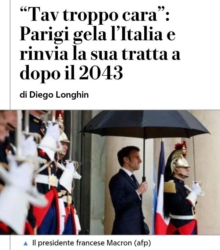 Ricordiamo brevemente che l’Italia dovrebbe pagare il 60% dei costi del tunnel di base, mentre la Francia il 40, a fronte di un tunnel che si troverebbe in territorio italiano solo per 12 km e per 45 in quello francese. Dunque se i cugini di oltralpe (con un bilancio ben più significativo del nostro) trovano che la spesa per la tratta nazionale sia eccessiva, cosa dovremmo pensarne noi? Intanto dal nostro lato i governi che si sono susseguiti hanno continuato senza colpo ferire l’opera di militarizzazione e devastazione della Val Susa. Ora dovrebbero chiedere scusa alla valle ed a tutti i cittadini i cui soldi sono stati dilapidati in questa opera inutile.
