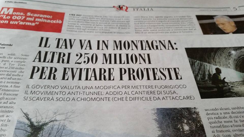IL GOVERNO VALUTA UNA MODIFICA PER METTERE FUORIGIOCO IL MOVIMENTO ANTI-TUNNEL: ADDIO AL CANTIERE DI SUSA, SI SCAVERÀ SOLO A CHIOMONTE (CHE È DIFFICILE DA ATTACCARE) TEMPI RAPIDI