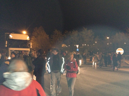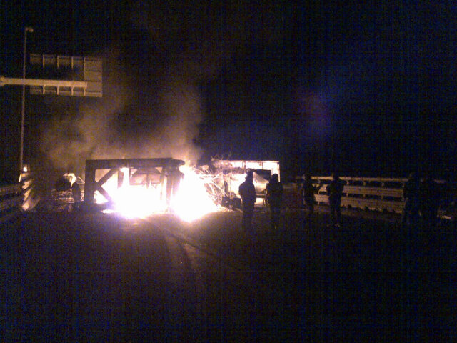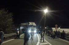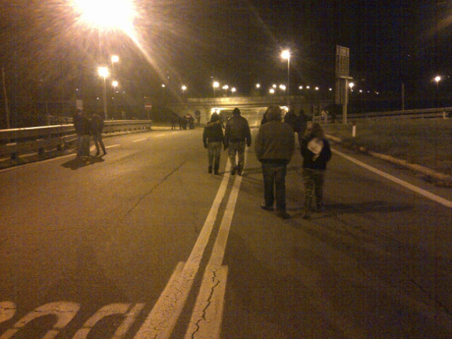 ore 22.54 Invasione dell’autostrada bloccata ormai da ore dalla polizia : costruite barricate. Lìilluminazione è spenta: guasto o preavviso?