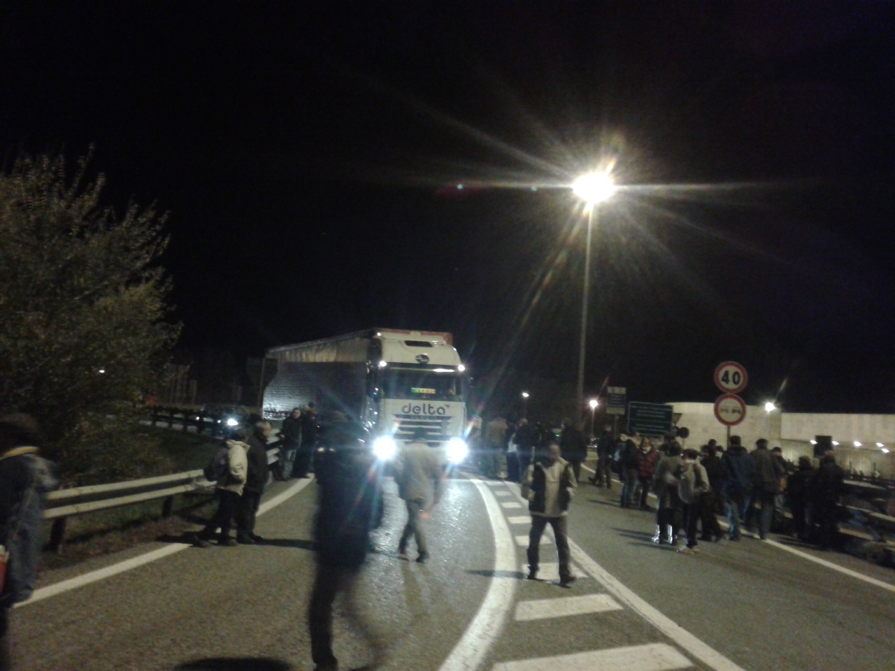 19.oo il corteo tenta di aggirare i blocchi, attraversata l’autostrada, e arrivati nella statale 24, l’ingresso dell’autoporto si presenta blindatissimo. Il corteo prosegue per una strada secondaria continuando il suo percorso