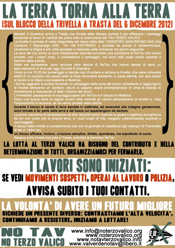 Info Sul blocco della trivella a Trasta (NOTAV TERZOVALICO)