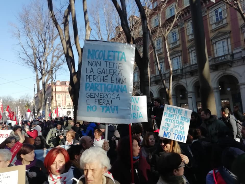 Sabato, per l’ennesima volta in questi ultimi tre decenni, con la mia famiglia sono scesa a Torino a manifestare la nostra contrarietà al TAV. Questa volta oltre che per la tutela della salute, dell’ambiente, della qualità di vita e dei bilanci del nostro Stato, abbiamo marciato anche per esprimere amicizia e gratitudine a Nicoletta Dosio, per il tanto che ha fatto e continua a fare per la nostra comune lotta e per aver messo in gioco in questi lunghi anni tutta se stessa, fino al sacrificio di un bene tanto prezioso come quello della libertà.