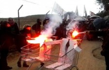 Durante il corteo, in uno dei luoghi simbolo della resistenza No Muos, è stato dato fuoco ai manichini di Renzi e Obama, strenui sostenitori dell’installazione. Imponente la militarizzazione delle forze dell’ordine, presenti in gran numero all’interno della base a difesa degli interessi americani. Tra battiture di reti e slogan il corteo ha proseguito fino all’ingresso principale della base, il cancello n. 1, teatro spesso di blocchi e sit in.