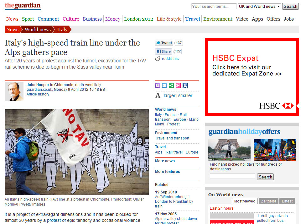 Pubblichiamo l’articolo che il The Guardian ha pubblicato qui, il 9 aprile sulla Valle di Susa, pensate un giornalista si è preso la briga di fare l’autostrada per verificare il traffico, cosa rara qui in Italia…