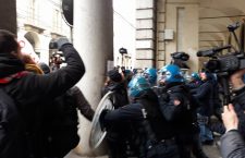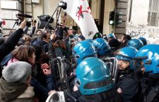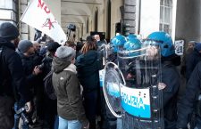 Ecco che così i No Tav e gli studenti, giunti prestissimo per accedere all’aula, si sono trovati un’accoglienza numerosa, fatta da centinaia di poliziotti, digos scatenati e tutto il corollario delle grandi occasioni.