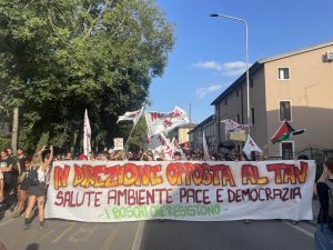 Il Climate Camp è un importante evento internazionale concepito per riflettere sulla situazione ecologica e sulle possibili strategie di salvaguardia dell’ambiente. La manifestazione si è spostata per l’occasione dal lido di Venezia, dove annualmente gli attivisti ambientali cercano di sfruttare la luce mediatica della Mostra del Cinema per promuovere le proprie istanze, proprio a Vicenza, al fine di supportare la resistenza contro i cantieri del TAV. Secondo i piani, nell’ex Lanerossi dovrebbero sorgere il campo base e l’area di cantierizzazione a servizio dei lavori, con la creazione un’enorme spianata di terra battuta e cemento di 11.320 mq. A Cà Alte, si prevede l’abbattimento di ulteriori 14.000 mq di bosco. All’interno del bosco occupato, tra spazi informativi e un tendone installato per i dibattiti, trova spazio anche un orto curato dagli ambientalisti e varie bandiere con i colori del Movimento No TAV e della Palestina. Nel pomeriggio del 6 settembre ha avuto luogo una doppia manifestazione: dapprima, alle ore 16, è andato in scena un presidio in supporto alla causa palestinese – tenutosi in viale dell’Industria, davanti a Sharma, azienda che collabora con vari gruppi israeliani attivi nella compravendita di diamanti -, organizzato dalla rete Vicenza per la Palestina; successivamente, alle 17, si è tenuta la mobilitazione dal titolo “In direzione opposta al TAV: salute ambiente pace e democrazia”, con un corteo No Tav partito alle ore 17 dal bosco di Cà Alte. «Salvaguardare i boschi significa difendere noi stessi da un’opera devastante imposta da un modello di sviluppo che antepone il profitto alla salute delle persone e alla tutela dell’ambiente: da questo nasce il nostro netto e irremovibile NO alla distruzione del territorio della città di Vicenza», hanno scritto in un comunicato gli organizzatori della manifestazione, affermando che il TAV non è solo «distruzione di ecosistemi preziosi per l’assorbimento della Co2 e l’abbassamento delle temperature a tutela della nostra salute», ma anche «una delle principali infrastrutture della logistica militare che renderebbe Vicenza uno dei nodi logistici cardinali di un’economia di guerra che miete sempre più vittime».