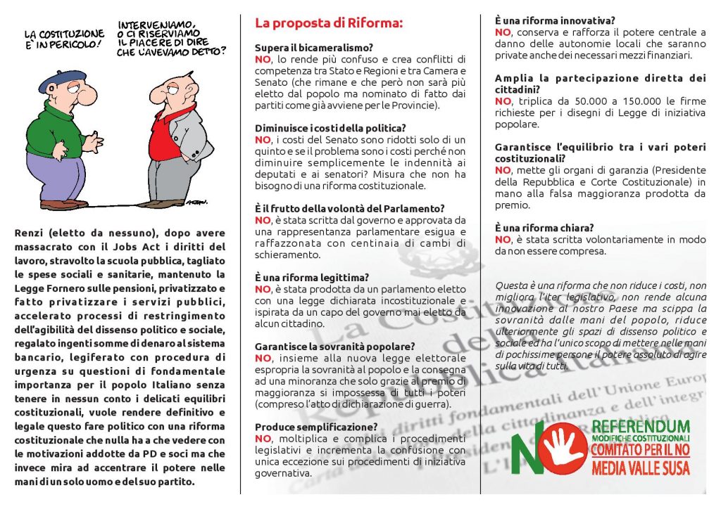 Renzi (eletto da nessuno), dopo avere massacrato con il Jobs Act i diritti del lavoro, stravolto la scuola pubblica, tagliato le spese sociali e sanitarie, mantenuto la Legge Fornero sulle pensioni, privatizzato e fatto privatizzare i servizi pubblici, accelerato processi di restringimento dell’agibilità del dissenso politico e sociale, regalato ingenti somme di denaro al sistema bancario, legiferato con procedura di urgenza su questioni di fondamentale importanza per il popolo Italiano senza tenere in nessun conto i delicati equilibri costituzionali, vuole rendere definitivo e legale questo fare politico con una riforma costituzionale che nulla ha a che vedere con le motivazioni addotte da PD e soci ma che invece mira ad accentrare il potere nelle mani di un solo uomo e del suo partito.