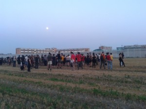 Dalle ore 20 il campo di fronte alla cancellata che delimita l’area del carcere si è riempito di circa 300 persone che hanno fatto sentire la propria vicinanza ai No Tav in attesa dell’udienza di domani mattina nella quale il giudice deciderà se convalidare o meno gli arresti.