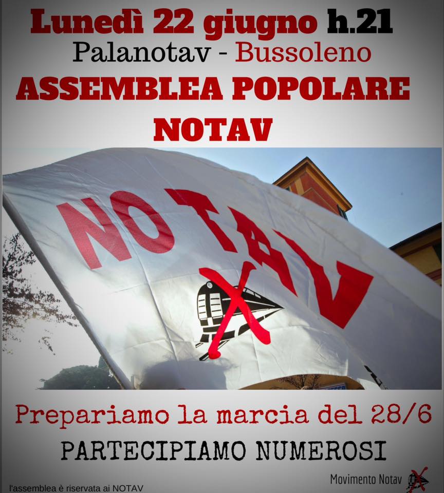 Lunedì 22 Giugno, a Bussoleno al Palanotav si terrà l’Assemblea Popolare in vista della marcia del 28 Giugno