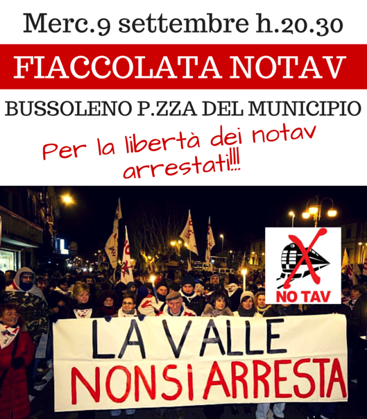 Come facciamo sempre, senza volerci però abituare mai, invitiamo tutti alla fiaccolata di mercoledì 9 settembre alle ore 21.00 nel piazzale della chiesa e del municipio in via Valter Fontan a Bussoleno.