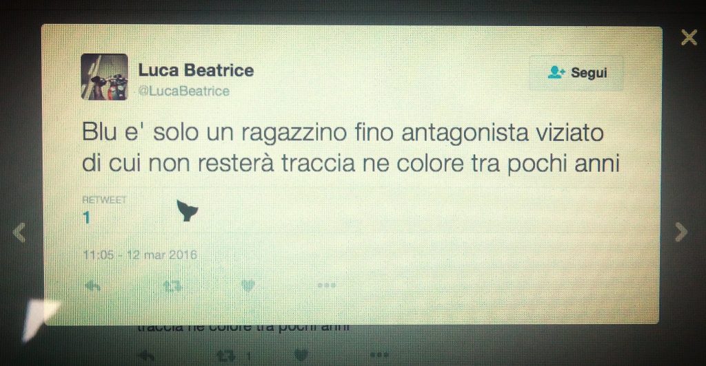 Il curatore della mostra è quel Luca Beatrice, presidente del circolo dei Lettori di Torino che si era espresso così su Blu:
