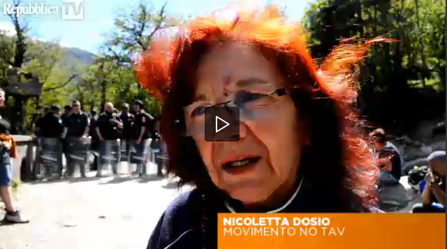 “Il movimento è basato sulla partecipazione di tanti e rifiutiamo la distinzione tra buoni e cattivi”. A dirlo è Nicoletta Dosio, attivista no Tav che questo pomeriggio era in Valle Clarea per un presidio in occasione della visita al cantiere di Chiomonte del ministro Lupi. “Il cantiere è pericoloso perché il terreno è fragile e franoso – ha aggiunto la Dosio – Ma noi vogliamo evitare il danno e non vogliamo che sia compensato con tardive sentenze”.