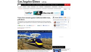 tratto da re-think america – Un fronte No Tav in California. Il progetto di treno ad alta velocità tra Los Angeles e San Francisco non piace più. Dopo il via libera del 2008, l’impatto sull’ambiente e l’aumento dei costi suscita dubbi nella maggioranza della popolazione.