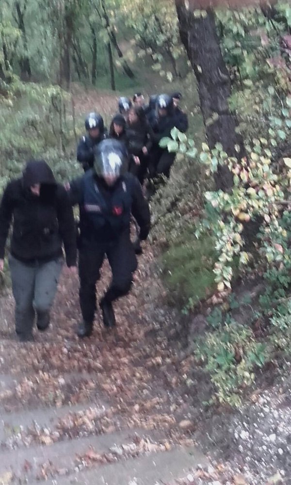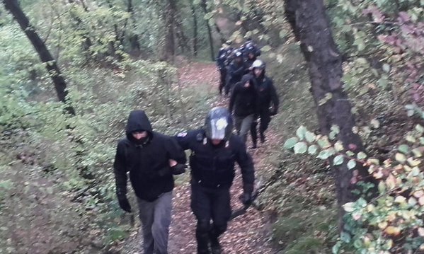 Ore 09.00 In corso lo sgombero, la polizia sta portando via gli attivisti.