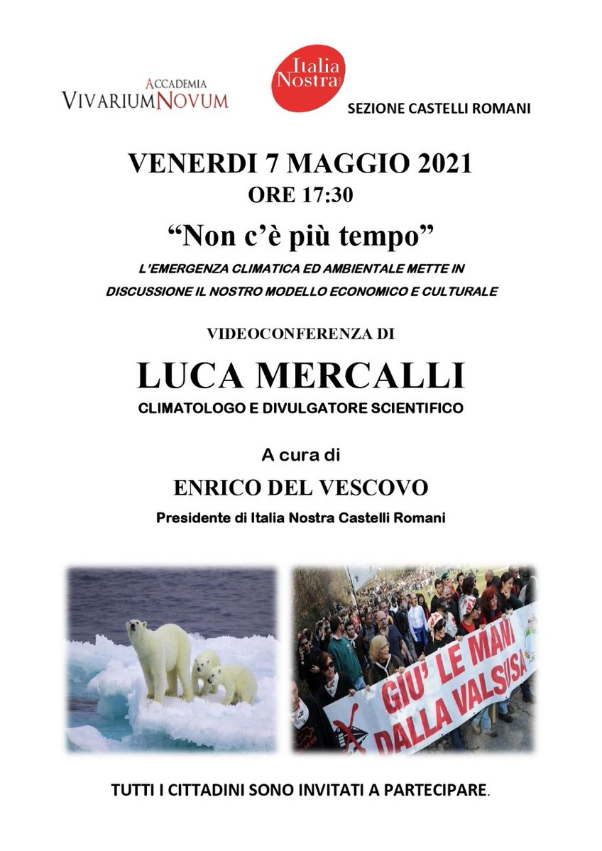 Pubblichiamo la registrazione degli interventi di Alberto Poggio e Luca Mercalli nell’ incontro on line che si è tenuto venerdì scorso (7 maggio) organizzato dal circolo di Italia nostra- Castelli Romani dal titolo “Non c’è più tempo”, in cui si è discusso di emergenza climatica e crisi ambientale e di come queste, anche partendo da situazioni come la costruzione di una mastodontica opera inutile come la Torino-Lione, stiano mettendo seriamente in discussione il nostro sistema politico, economico e culturale.