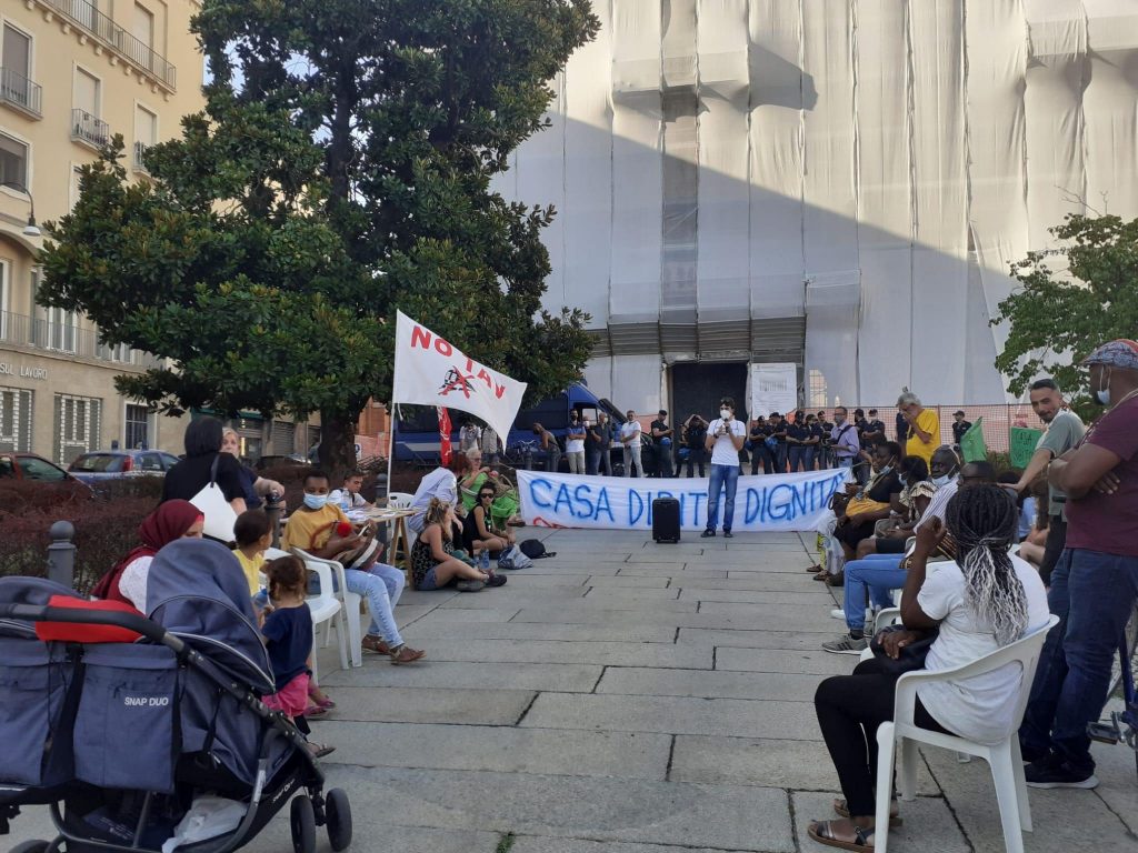 Nella piazza davanti al Comune si raccolgono decine di famiglie, bambini e militanti per il diritto all’abitare, lotta che da svariati anni fa i conti con un’amministrazione comunale indifferente alle esigenze dei suoi abitanti.