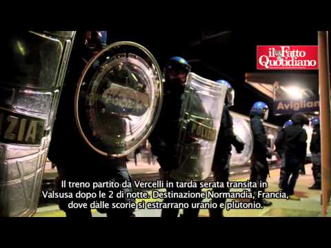 Presidio ad Avigliana, in Valsusa, per protestare contro i passaggi dei convogli carichi di rifiuti nucleari in viaggio per la Francia per il riprocessamento