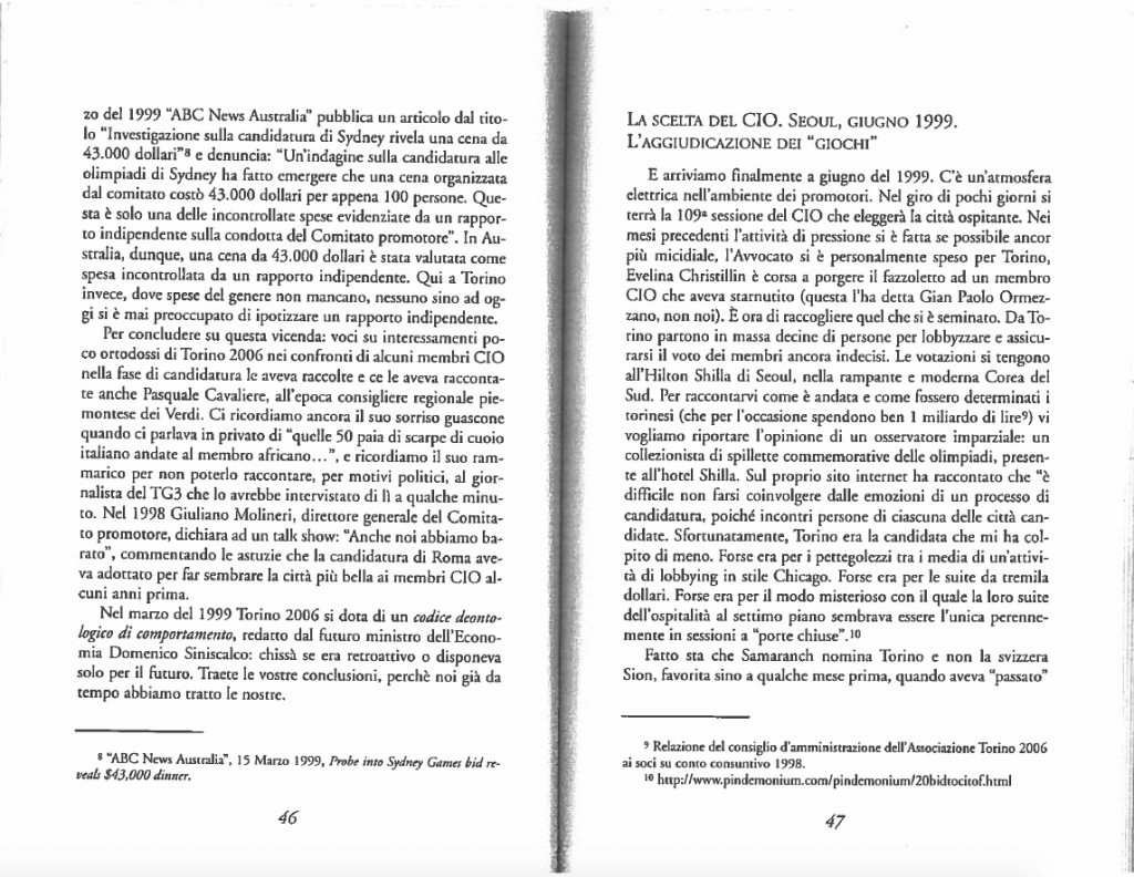 La storia ha sempre insegnato – e noi lo documentammo prima che iniziassero a piantare il primo chiodo – che le spese crescono sempre vertiginosamente rispetto alle previsioni. È successo anche qui, ma se vai a vedere i bilanci definitivi, quasi non te ne accorgi. Roba che Grillo non avrà letto. A Torino cosa è successo? Come ti dicevo, il Toroc, il Comitato Organizzatore, è fallito e ha avuto bisogno di ricorrere a pesanti finanziamenti pubblici, di diversa origine, alla fine mi pare che fossero nell’ordine del quarto di miliardo di euro. La cosa stupefacente è che nessuno ha mai indagato nonostante una magistratura locale attentissima….su altri temi.
