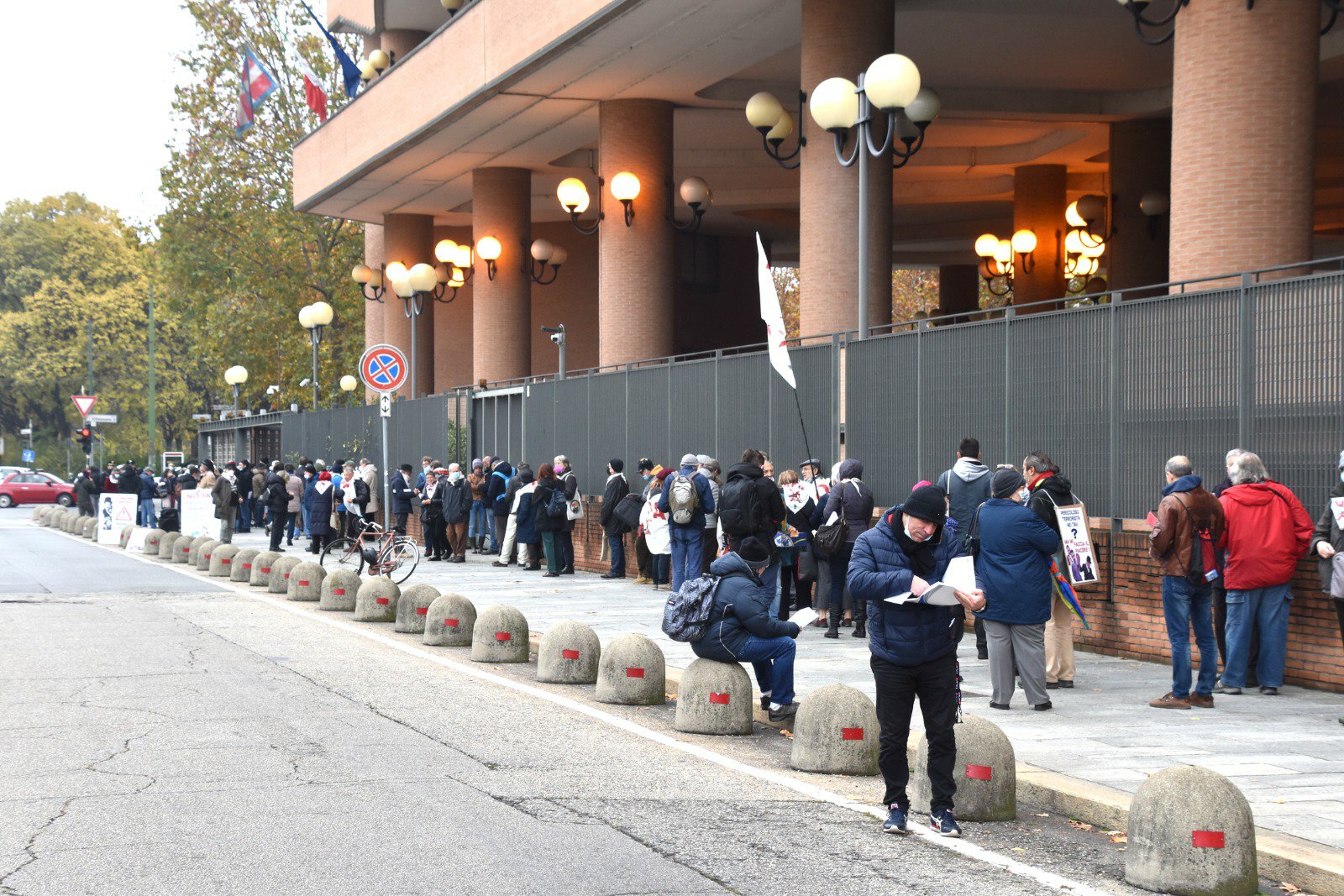 Oltre 150 i No Tav che questa mattina si sono ritrovati davanti al Tribunale di Torino e alla Caserma dei Carabinieri di Susa per depositare le prime querele contro Maurizio Molinari, Direttore de “La Repubblica”, che il 10 ottobre aveva rilasciato dichiarazioni diffamatorie ai danni dei No Tav, durante la trasmissione “Mezz’ora in più”, condotta da Lucia Annunziata (qui il video https://youtu.be/9E3EauAkJzM) .
