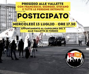 La solidarietà è un’arma troppo potente, facciamoci sentire e partecipiamo numerosi/e al presidio che si terrà mercoledì 13 luglio, alle ore 17.30, con appuntamento al capolinea del 3 alle Vallette di Torino.