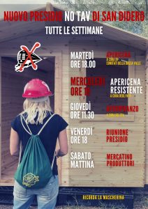 Inizia una nuova settimana No Tav e come di consueto il Presidio di San Didero si riempie di attività e iniziative: